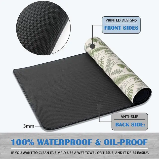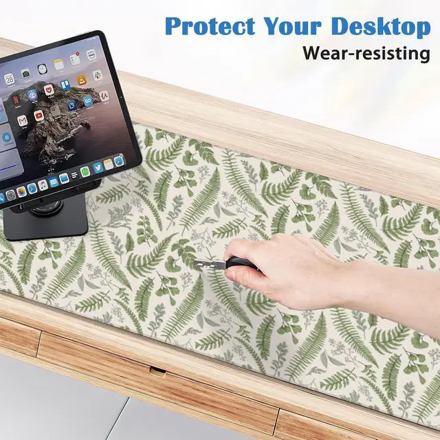 Environmental, and safe to use. ^^ Soft and Non-slip Rubber BaseThe soft and dense non-skid nature rubber base keeps the pad firmly in place, it can effectively prevent the mouse and keyboard from sliding and moving for stable operation. The desk pad is flexible enough to be rolled up for easy transport, to move around so you can work or game wherever you want. ^^ Suitable for many occasionsLarge enough size can protect the desktop from abrasion and liquid spills. Works well on all types of desks including wood, glass, leather, metal, marble desk and more.