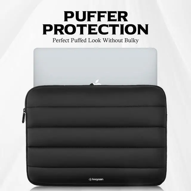 ^^ Enough Protection: Bagasin Puffy laptop sleeve case is featured with 4-layer protections for your laptop: The extreme smooth elastic polyester (waterproof and dirt resistant); A layer of non-woven fabrics; 6mm shockproof washable cotton; Crystal soft lining.