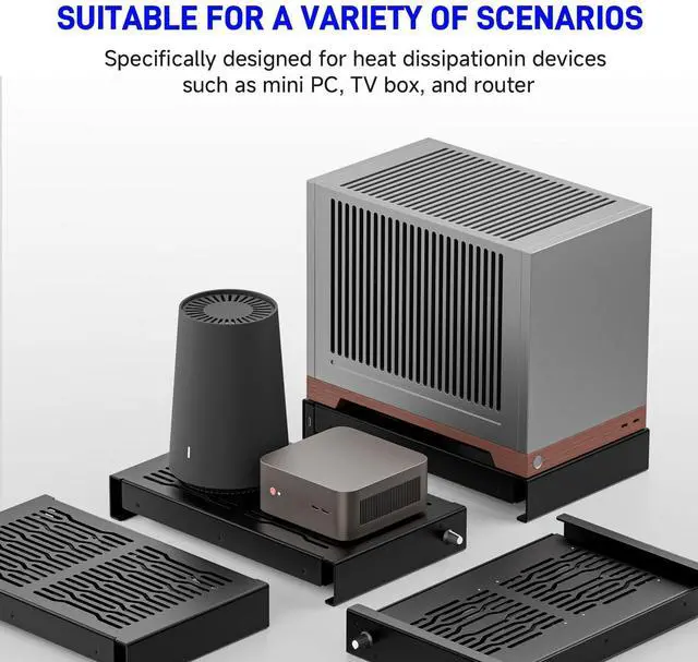 Quiet 2 x 120mm USB Fan, Aluminum Stand with Cooling Fan, Compatible with Mac mini - Desktop Organizer for Router, TV Box, Mini PC, Switch- Heat Dissipation Design for Home/Office Use
