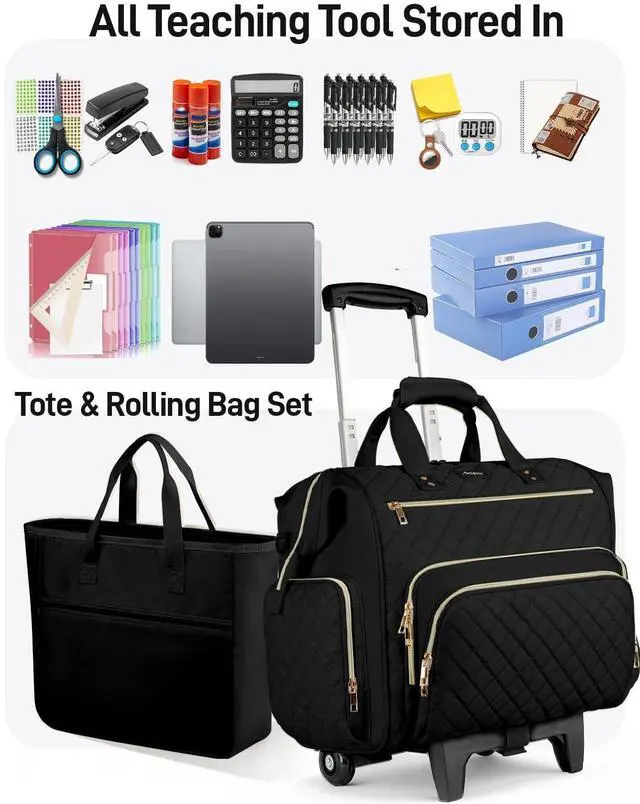 Bag Included: This wheeled teacher bag also includes a tote teacher document bag ( 11.75 inches long x 11 inches wide x 4 inches high), perfect for quickly handling classroom chores or storing personal items. You can organize various items to suit different needs, such as teacher supplies (laptops, books, documents) and personal items (lunchbox, phone, water bottle, umbrella, etc. ) ^^