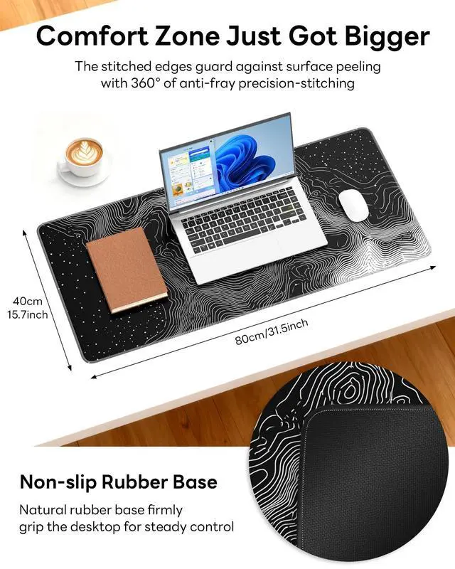 Non-slip Rubber Base: The soft & thick rubber backing has a dense non-skid texture, keeping your desk mat firmly in place. This oversized mouse pad stays uniformly flat on imperfect surfaces. Immerse yourself in work or games without annoying mat movement ^^ Easy to