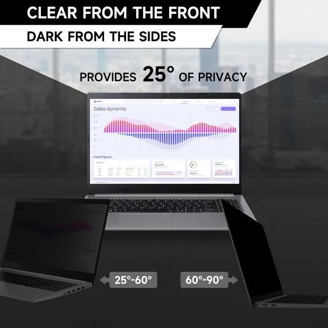 Privacy ProtectionNot for 14" with 1920x1080P ( 16:9 ) Laptops. Our laptop screen privacy shield is perfect for professionals who deal with sensitive information or use computers in public places. With a viewing angle of 25, it is virtually impossible for anyone to peek at your screen without your consent. The front of the screen remains crystal clear and visible, providing complete privacy protection from the sides. It's the ideal solution for healthcare providers, mobile workers, commuters, Back to School and Off to College students, and business travelers. ^^ CompatibilityThis laptop privacy screen 14 inch is specially designed to fit all brands of 14-inch laptops with a 16:10 aspect ratio (Not Fit for a 16:9 resolution laptop.
