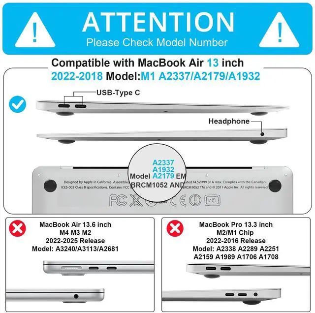 Model Compatibility: Only compatible with MacBook Air 13 inch 2022 2021 2020 2019 2018 Release with Retina Display and