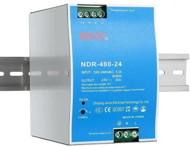 Primary output voltage (vdc): 24 ^^ Output current (a): 20 ^^ Input voltage (vac): 85 to 264 ^^ Universal AC input / Full range Built-in active PFC function ^^ installed on DIN rail TS-35/ 7.5 or 15