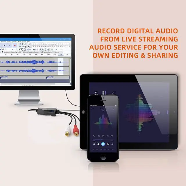 AUDIO CAPTURE CARD DEVICE: Farewell to the old cassette, make the memory alive and become forever. With 3.5 mm and R/L audio connector input, easily record live audio on PC and transfer analog to be digital formats such as MP3, WAV. User can save&listen music on MP3 player, computer, portable CD player, or car stereo or home stereo system. ^^