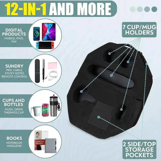STAY ORGANIZED AND SPILL-FREE: Keep your essentials secure and mess-free with seven cup/mug holders and three storage pockets. Our built-in cup holder and accessory tray ensure everything stays in place, preventing spills and keeping you organized effortlessly. ^^