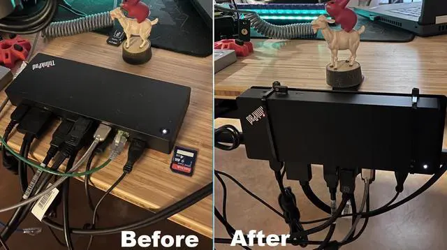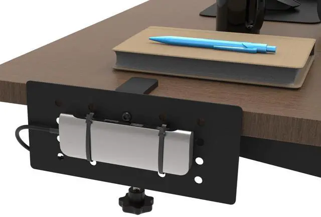 Space Optimization: Our mount plate is ingeniously engineered to mount your dock station on the side of your desk, effectively freeing up valuable desk space. Say hello to a cleaner, more organized workspace.