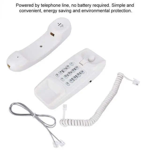 With flash function and call mute function. ^^ Powered by telephone line, no battery required. Simple and convenient, energy saving and environmental. ^^ It can be placed on the desktop or wall. ^^ Exquisite and compact, does not occupy much space. ^^ With last number redial function.