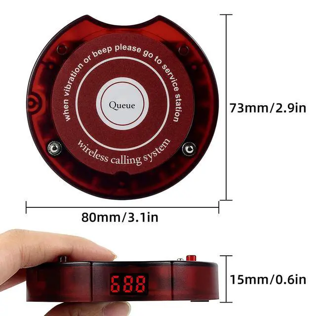 With a lanyard hole; hang the pager around your neck to free your hands for easy work ^^ Turn off the prompt tone; guests can directly turn off the waiting buzzer after receiving the page to avoid disturbing the customer for a long time ^^ 2 prompt modes; set vibration and flash mode; quickly page parents without disturbing other customers to pray ^^ Long standby; each beeper has a built-in rechargeable battery; the standby time is 18 hours; which can meet your daily needs ^^ 999 channels; up to 998 pagers can be added to the restaurant pager system; dont worry that the business growth is not enough