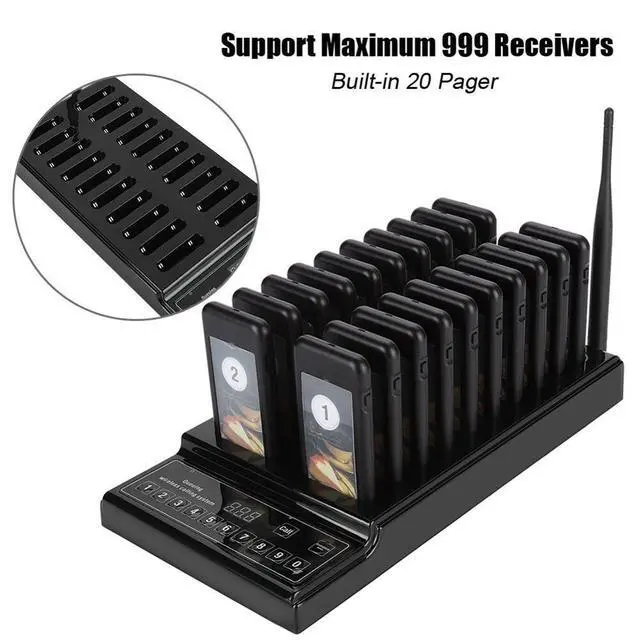 packing list: 1 x Restaurant Pager System Transmitter Host20 x Receiving Subcomputer1 x Manual1 x Antenna1 x Power Adapter