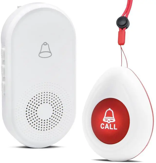 • Easy to use and carryReady to use out of the box without pairing. The receiver can be moved with caregivers to the bedroom, kitchen, bathroom, or yard. The call button can be conveniently hung around the neck with a hanging rope, or installed on the wall with double-sided tape or screws (the package includes hanging rope, d