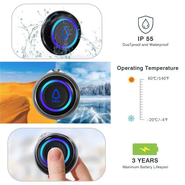 The Caregiver Pager System allows seniors, patients, and those needing help to request assistance with a button press. Ideal for homes and hospitals, it enhances safety and communication. Expandable to 30 call buttons, it features 58 ringtones and 5 volume levels for customizable alerts.