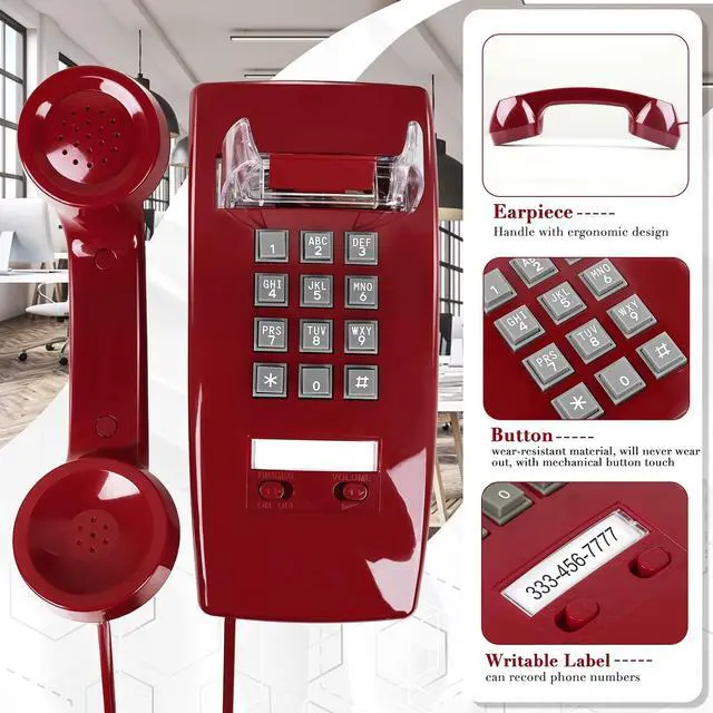 ^^ Modern Technology The landline corded telephone has been updated with modern technology to ensure they work on any standard home phone line. Plug and play, no batteries. ^^ Phones for SeniorsOur wall telephone has an appearance of old-style, featuring simple operation and clear loud sound, making it a good gift for the elderly. Your grandparents will be very happy when they receive such a sweet gift!