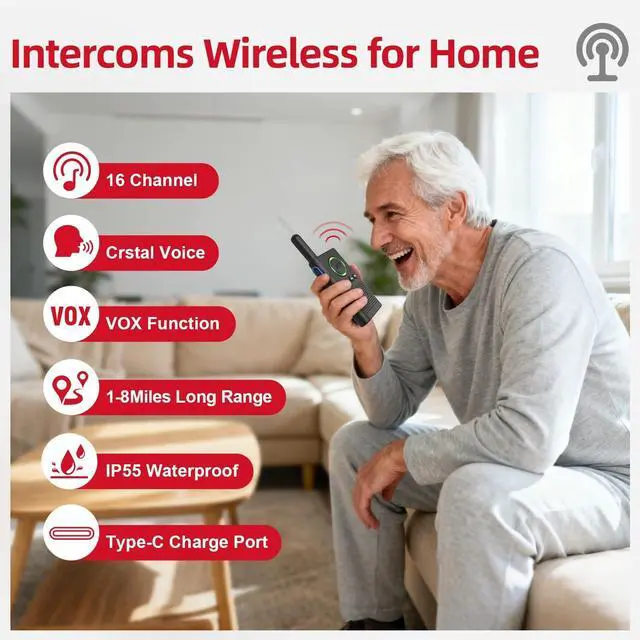 [ Wireless Guard ] 2 Receivers 2 Call Buttons and 2 Walkie Talkies. Allow caregivers and residents to be free while ensuring that help is still available at the touch of a button, ideal for elderly, seniors, patients, disabled ^^ [ Easy to Carry ] The receiver can be moved with the caregiver (receiver requires plugging into an outlet), you can take it to the bedroom, kitchen or yard. The call button can also be hung around the neck of the person with a neck strap who needs help like a pendant or secured with a bracket or double sticker.