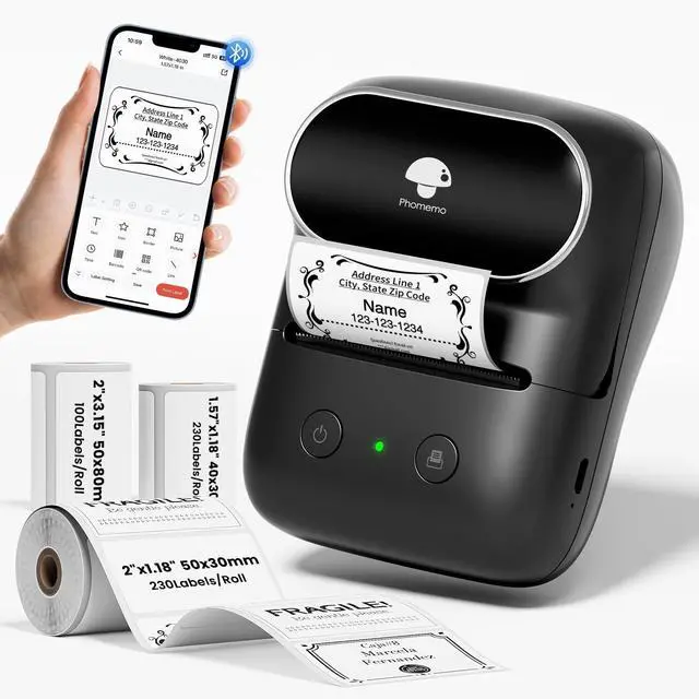 Use]: The Phomemo Bluetooth label printer allows you to customize and print your labels in just three steps: 1. Download the "Print Master" app from the app store; 2. Turn on your phone's Bluetooth, then select the M110 printer in the app to complete the connection; 3. Choose the label size, edit the desired template, and you can start printing. If you need to print via a computer connection, you need to connect a USB cable and download the "Labelife" APP from the Phomemo website for printing. For details, please refer to the instruction manual. ^^ [Widely Used] The Phomemo M108 Bluetooth thermal label Maker basically covers all usage scenarios in daily life and work. Whether it is for business scenarios such as small businesses, retail stores, clothing stores, jewelry industry, or daily life scenarios including home organization, schools, offices, and item marking, it can meet your needs, making your life more organized with the M108 portable label printer ^^ [All in one