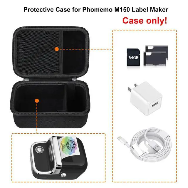 • Perfect FitRAIALL hard label printer case is specially designed for Phomemo M150 label maker machine for home use and small business. Perfectly fits M150 vintage thermal label maker, printer labels, USB-C cordconsumables and other printing accessories. (Note: for sale is case only, M150 label maker and other accessories are not included)