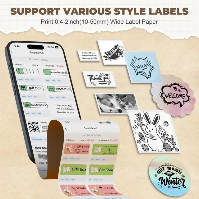 Various Label Papers: This label printer can accommodate thermal label papers with a width of 20 mm to 57 mm, comes with 1 roll of 40*20mm thermal label printing paper, waterproof, oil-proof and scratch-proof properties ensure that the labels are durable to meet the needs of small labels to various labels ^^