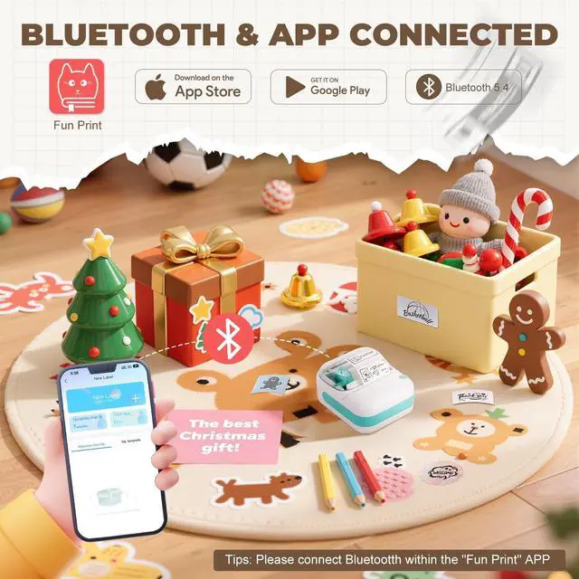 Powerful APP: Compatible with iOS and Android systems, the printing application "Fun Print" of this mini sticker printer can be easily downloaded to your mobile phone from App Store and Google Play Store, explore various templates through the APP, it can print barcodes, QR codes, images, photos, documents and labels to meet most of your needs ^^