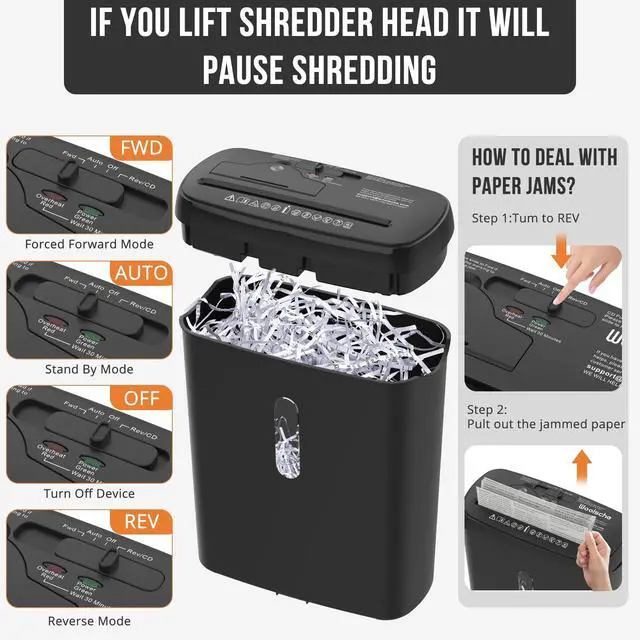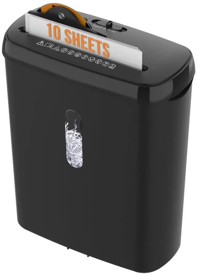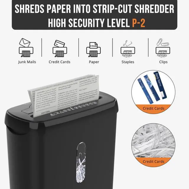 P-2 Security Protection: Shreds up to 10 sheets(70g/m) per pass into 15/64" x 11-22/32" (6x297mm) strips. Ideal for destroying confidential documents, junk mail, and staples to keep home office data secure ^^ Continuous 5-Minute
