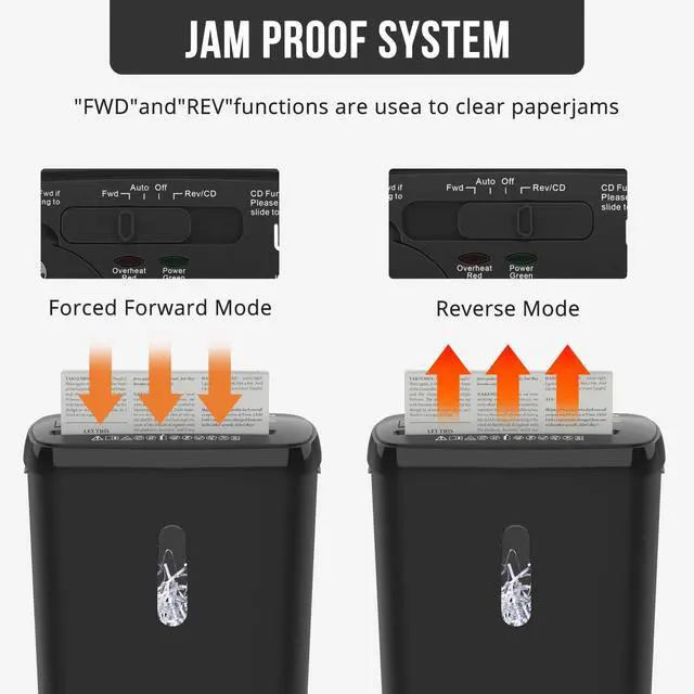 Media Destruction: Easily handles credit cards, CDs, and thick envelopes. The 4-mode switch (Auto/Off/Reverse/Fwd) provides full control and helps clear paper jams quickly ^^ Compact 3.17 -Gallon