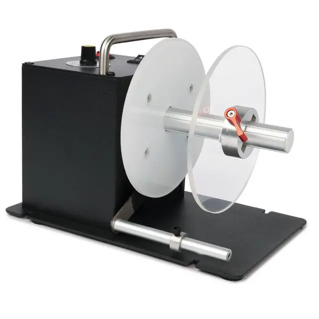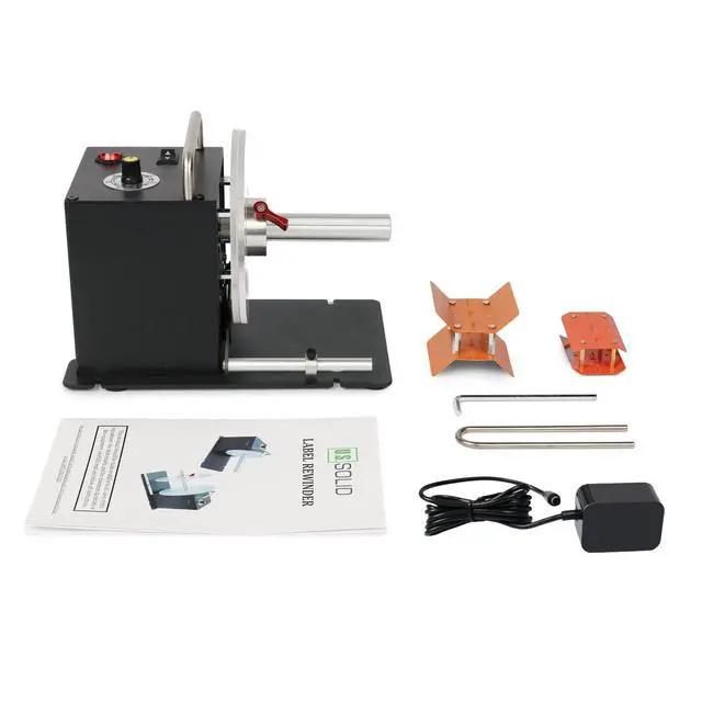 DUAL FLANGE PLATES WORKING: Our U. S. Solid Automatic Label Rewinder Machine has a dual flange plate design. You can use the double flange plates to guide the outer edge of labels and ensure an even roll. That makes it suitable for smaller sizes like washing marks and labels of special materials. ^^