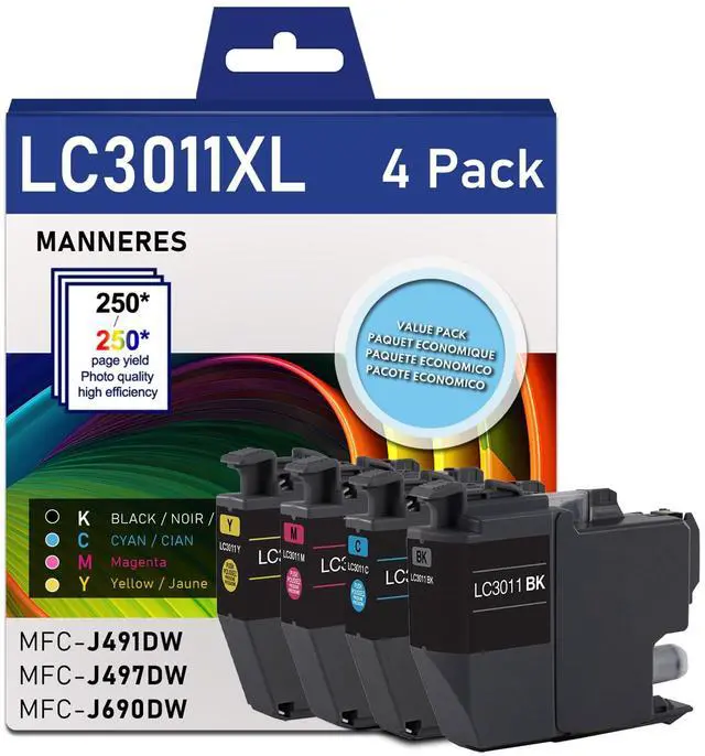 Compatible LC3011XL Ink Cartridges Printer: MFC-J491DW MFC-J497DW MFC-J690DW MFC-J895DW Printer ^^ LC3011 ink cartridge has good compatibility, accurate matching with the printer, large capacity, multi-layer packaging, no damage, and no leakage ^^ Tips1. Remove the yellow "PULL" label before installing the cartridge. 2. Ignore the printer ink level "? " reminder, it will not affect the use of the cartridge