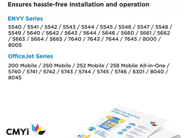 Printer Compatibility: HP ENVY 5540, 5541, 5542, 5543, 5544, 5545, 5546, 5547, 5548, 5549, 5640, 5642, 5643, 5644, 5646, 5660, 5661, 5662, 5663, 5664, 5665, 7640, 7643, 7644, 7645, 8000, 8005, HP OfficeJet 200 Mobile, 250 Mobile, 252 Mobile, 258 Mobile, 5740, 5741, 5742, 5743, 5744, 5745, 5746, 6301, 8040, 8045 ^^