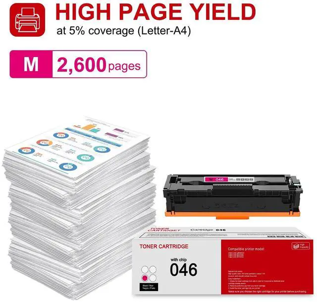 ^^ Page Yield: 2, 600 pages per 046 Magenta Toner Cartridge at 5% coverage. ^^ Compatible for