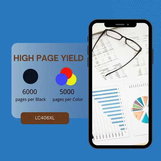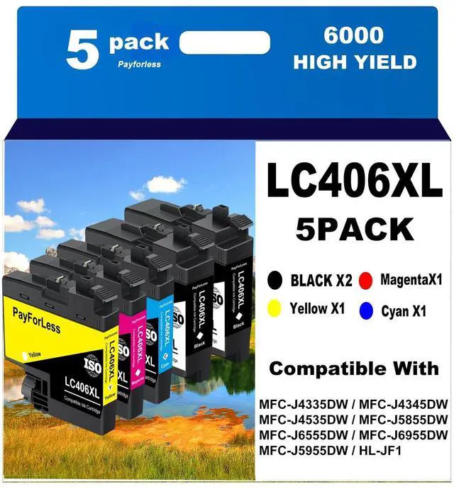 Page Yield: UP to 6, 000 pages per LC406XL LC 406XL Black Ink Cartridge (LC406XLBK) and 5, 000 pages for LC406XL LC 406 XL Color Ink Cartridge LC406XLC LC406XLM LC406XLY High Yield Ink Cartridge (A4 Letter, at 5% Coverage) ^^