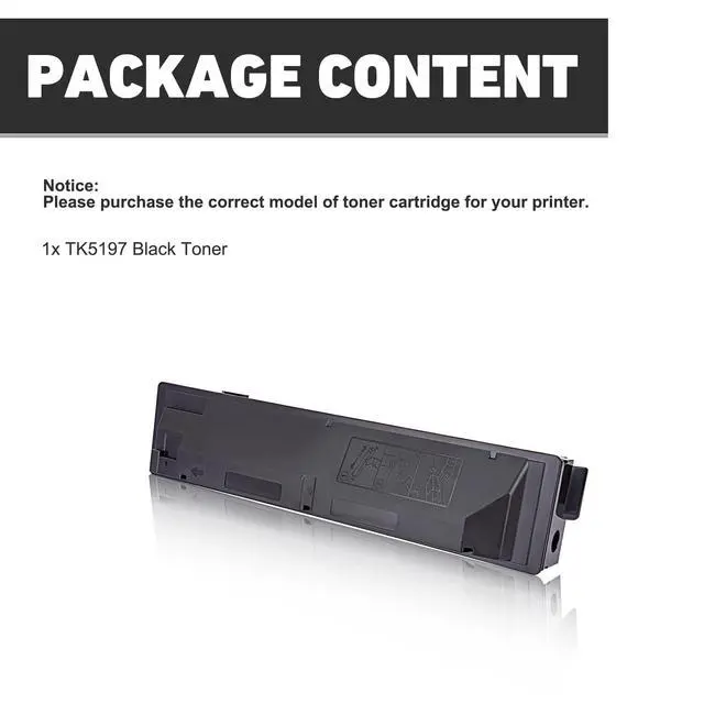 • Package Include: 1-Pack replacement for Kyocera TK-5197 toner cartridge, 1 x black toner TK-5197K