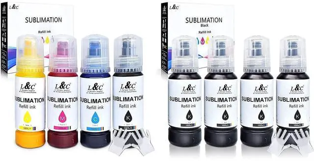 Package: 4 X Black Sublimation ink 100ml, 1 X Black Sublimation ink 70ml, 1 X Cyan Sublimation ink 70ml, 1 X Magenta Sublimation ink 70ml, 1 X Yellow Sublimation ink 70ml, 8pack total 680ml