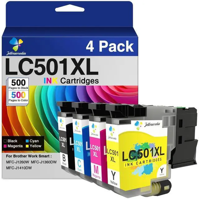 Compatible Printers: Jettruemedia LC501XL ink cartridges for Brother Printer MFC-J1360DW MFC-J1410DW MFC-J1260W. Suitable for office and home use, perfectly matches the printer and can greatly improve work efficiency. (Non-OEM Cartridge) ^^