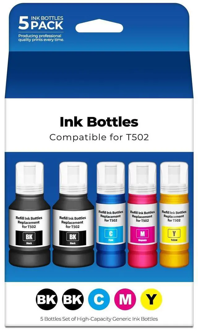 Every Project: Get sharp text and rich, dynamic colors on everything from everyday documents to detailed graphics and photo prints ^^ T502 ink is fully compatible with all printers that use the original 5 02 ink. Every bottle is strictly tested to deliver sharp text and durable prints for a seamless experience