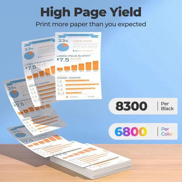 High Page Yield: 8300 Pages Per Black Ink Bottles and 6800 Pages Per Color Ink Bottles(Letter/A4, at 5% coverage) ^^ Brilliant Prints for