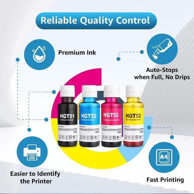 High Yield: 100ml for GT51 black ink bottle, 100ml for GT52 Cyan ink bottle, 100ml for GT 52 Magenta ink bottle, 100ml for GT-52 Yellow ink bottle ^^