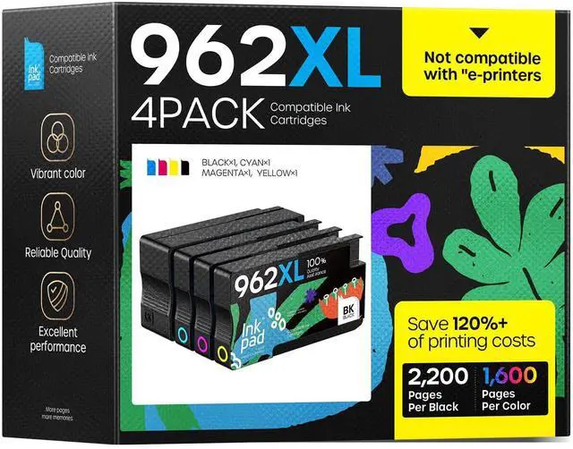 Package Contents: 4 Pack of compatible ink cartridges for hp ink 962xl black and color combo pack ( 1 Black, 1 Cyan, 1 Magenta, 1 Yellow) ^^
