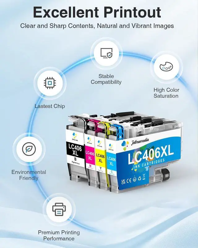Professional Support: Jettruemedia LC406XL ink cartridge certified by ISO9001, ISO4001, CE, RoHS, REACH, STMC. Any defectives, please contact seller Jettruemedia for free replacements or refund. Jettruemedia team provides 24 hours online technical support. Automatic invoice generation