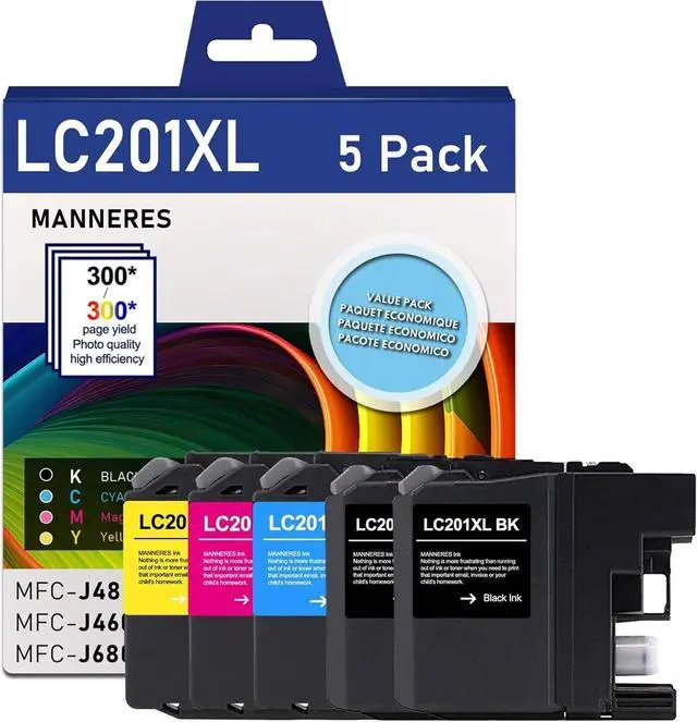 High Yield: Up to 300 pages per LC201 XL Black Cartridge, 300 pages per LC201 XL Color Cartridge (at 5% coverage), it is compatible with the LC203 printer model ^^