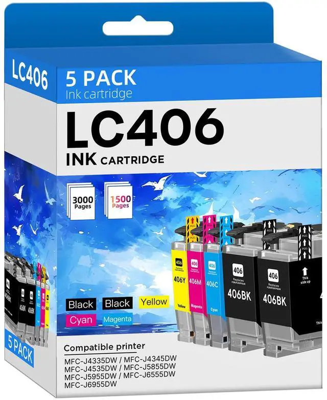 Package Includes: 5 pack LC406 ink cartridges for brother printer, 2 x black LC406 ink, 1 x cyan LC406 ink, 1 x magenta LC406 ink, 1 x yellow LC406 ink ^^