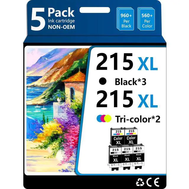 Package Contents: 5 Pack Remanufactured ink cartridge Replacement for 215XL ink cartridges (3 x Black 215XL, 2 x Tri-Color 215XL) ^^ 215XL ink cartridges