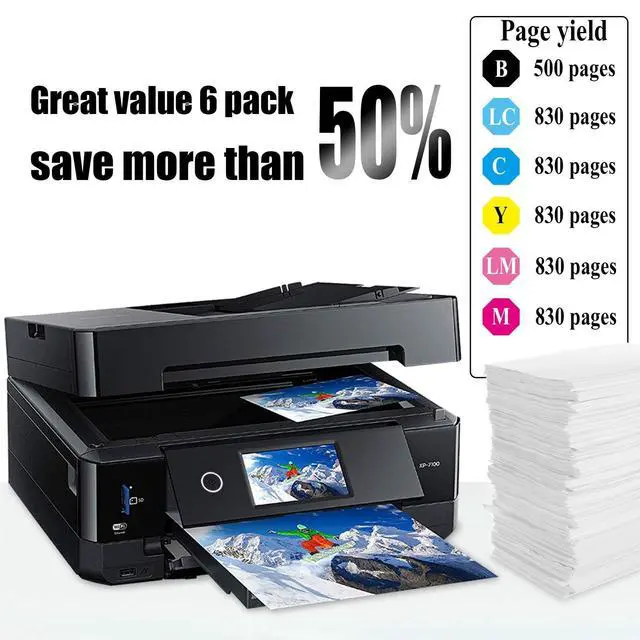 Yield Page: Black up to 500 pages at 5% coverage (Letter A4), Photo Black/ Cyan/ Magenta/ Yellow up to 830 pages at 5% coverage (Letter A4) ^^ High Yield Remanufactured for Epson 312 312xl ink cartridges (1 Black, 1 Cyan, 1 Magenta, 1 Yellow, 1 Light Cyan, 1