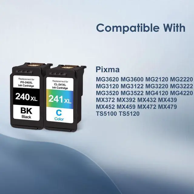 • FOR CANON 240XL/241XL INK CARTRIDGES COMBO FOR HP PRINTERS: Pixma MG3620 MG3600 MG2120 MG2220 MG3120 MG3122 MG3220 MG3222 MG3520 MG3522 MG4120 MG4220 MX372 MX392 MX432 MX439 MX452 MX459 MX472 MX479 TS5100 TS5120