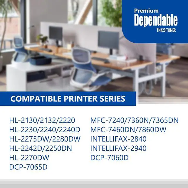 Includes: 2 Pack Black TN420 Toner Cartridge