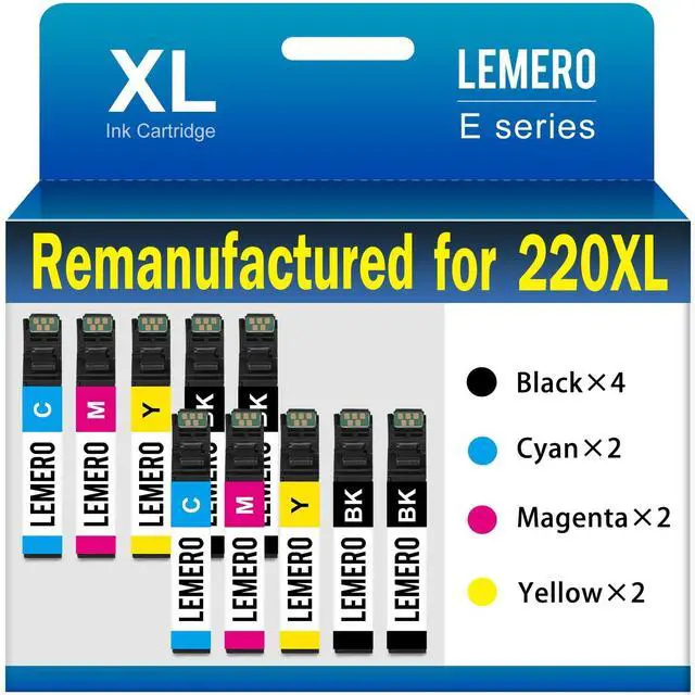 Epson Contents: 4 x replacement for 220xl black ink cartridge for Epson, 2 x replacement for 220xl ink cartridge cyan, 2 x replacement for 220xl magenta ink cartridge, 2 x replacement for 220xl yellow ink cartridge ^^ This replacement for Epson 220 ink cartridges, equipped with the latest chips, ensures smooth and efficient printing, consistently producing true-to-life photos resistant to fading and smudging.
