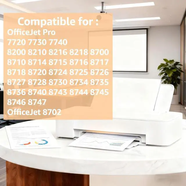 HP Printers: Fully compatible with HP OfficeJet 8702 and a broad range of OfficeJet Pro models, including OfficeJet Pro 7730/7740/8200/8210/8216/8218/8700/8710/8714/8715/8716/8717/8718/8720/8724/8725/8726/8727/8728/8730/8734/8735/8736/8740/8743/8744/8745/8746/8747, OfficeJet 7720/8702. Incompatible with eseries printer, such as 8210e/8710e/8720e/8730e/8740e/7740e. Confirm your printer model before you purchasing.