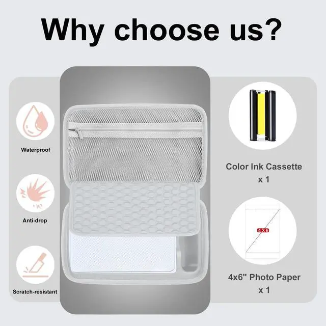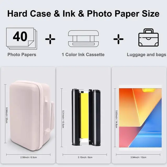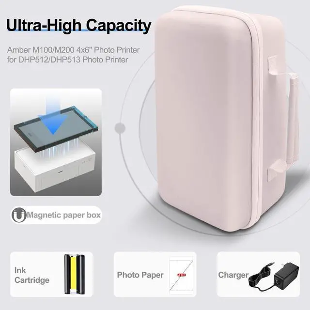 DescriptionALZ-LZHQ Hard Case and Compatible with Amber M100/M200 4x6 Photo Printer 40 Sheets Photo Paper +1 Ink Cartridge Refill for DHP513 Photo Printer (Pink Case+1 Ink and 40 Photo Paper)