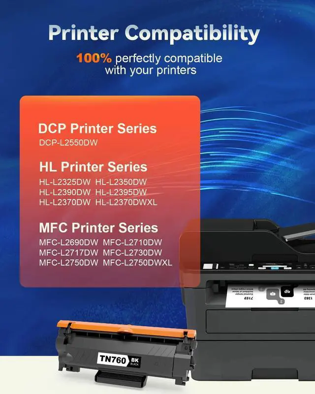 ^^ High Page Yield: Replacement for Brother TN760 TN730 TN770 cartridge. Up to 3, 000 Pages per toner cartridge at 5% Coverage (Letter/A4), ideal for daily printing needs.