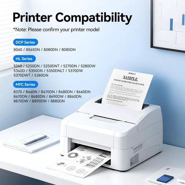 ^^ Perfect Compatibility: Compatible for Brother DCP-8060, DCP-8065DN, DCP-8080DN, DCP-8085DN, HL-5240, HL-5250DN, HL-5250DNT, HL-5270DN, HL-5280DW, HL-5340D, HL-5350DN, HL-5350DNLT, HL-5370DW, HL-5370DWT, HL-5380DN, MFC-8370, MFC-8460N, MFC-8470DN, MFC-8480DN, MFC-8660DN, MFC-8670DN, MFC-8680DN, MFC-8690DW, MFC-8860DN, MFC-8870DW, MFC-8890DW, MFC-8880DN Printer.