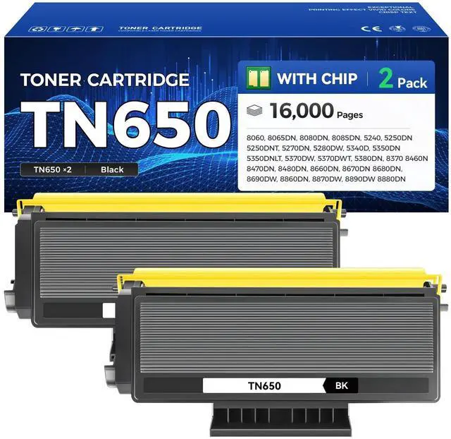 ^^ Package Contains: 2 New TN-650 black toner cartridges (Total Page Yield 16, 000). ^^ Count on high-quality, reliable printing and save time by avoiding common printing problems: Use our Cartridge to avoid toner leaks, premature failures or dangerous code as much as possible.