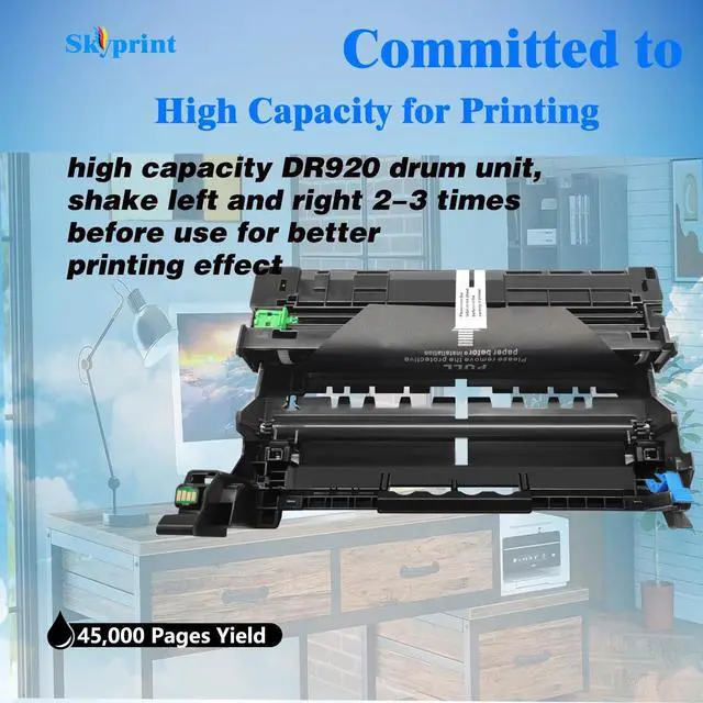 SkyPrint DR-920 drum unit come with intelligent chips that automatically recognize and provide printing,fast installation,providing you with better clear and natural printing effects